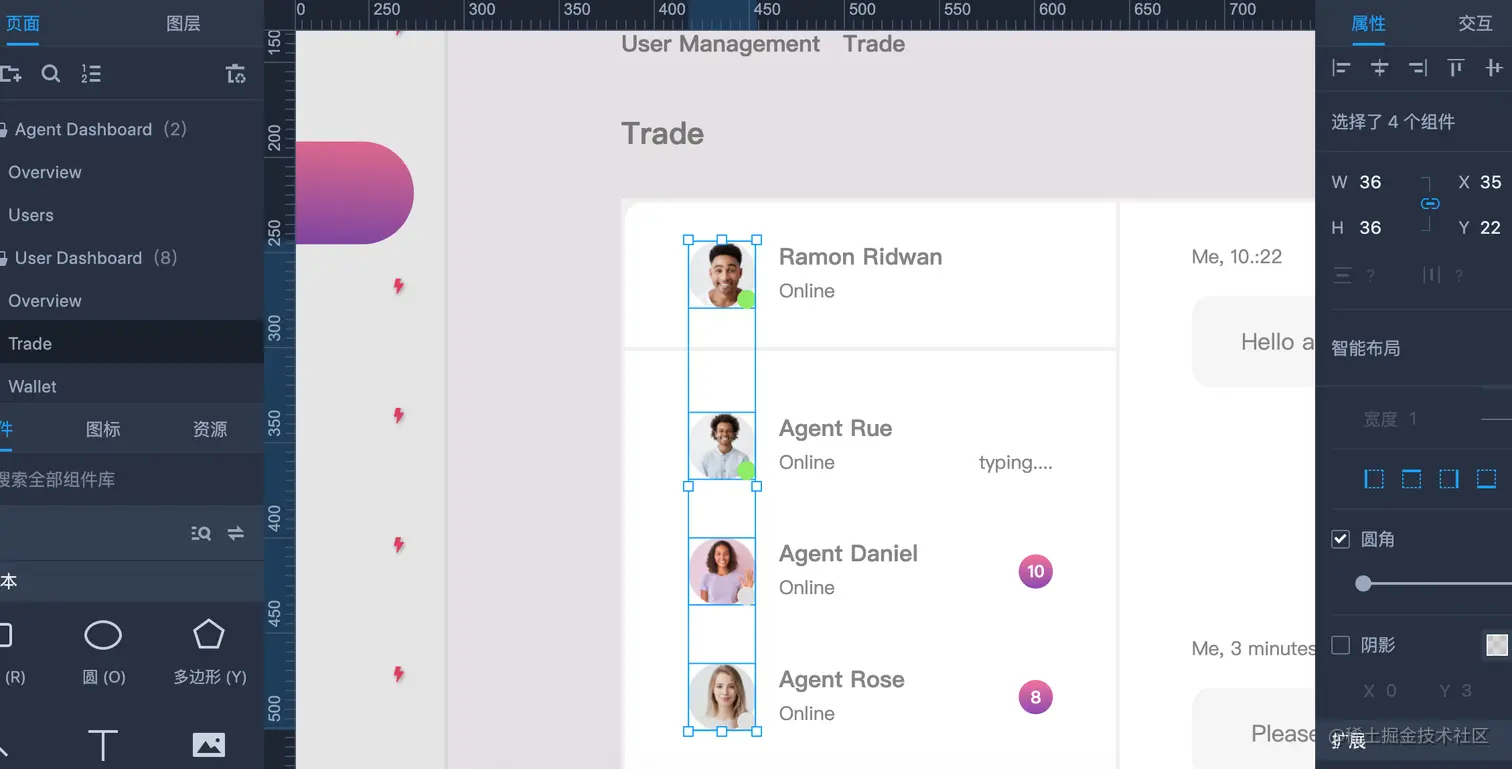 这里我们为了达到更加逼真的界面设计效果,制作了一批【用户头像】,通过图片组件添加到原型界面。