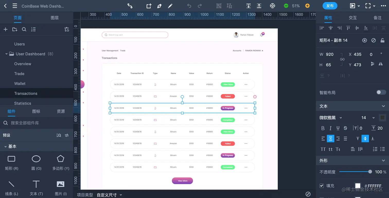 比如CoinBase后台管理原型模板,我们就可以直接导入到原型设计软摹客RP中。