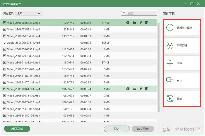 步骤4.可以对录屏文件进行剪辑和后期(合并、压缩等)处理。