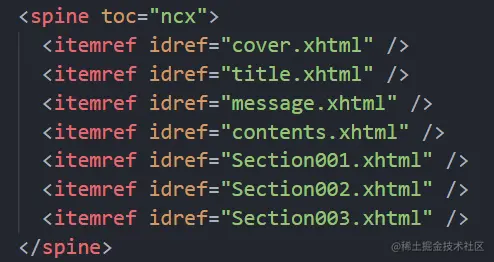 解压数据后,根据 epub 标准,解析 rootfile(根文件) 的位置,rootfile 中存放了 epub 中所有的信息(xml 格式):