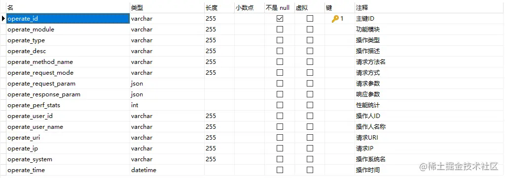 `operate_type` varchar(255) DEFAULT NULL COMMENT '操作类型',