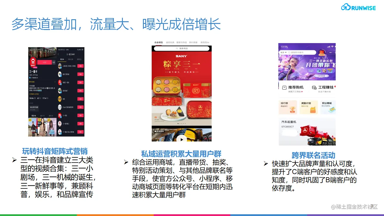 对于SY这样的b端业务占绝对大头的企业而言,面向c端的运营不能直接为三一重工带来显著的收入增长,但它们可以为公司带来流量和品牌影响力,从而建立更紧密的关系和销售闭环,吸引更多的消费者和潜在客户,并建立更紧密的关系。具体的好处包括: