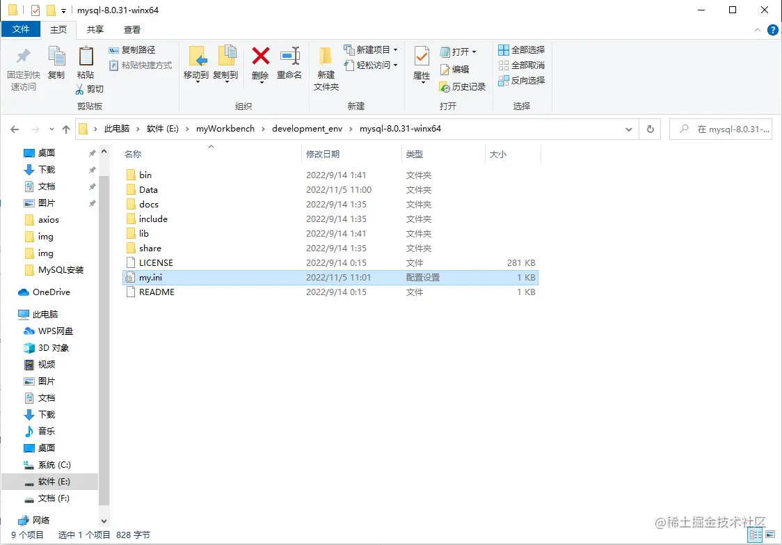 例如:E:\myWorkbench\development_env\mysql-8.0.31-winx64\bin