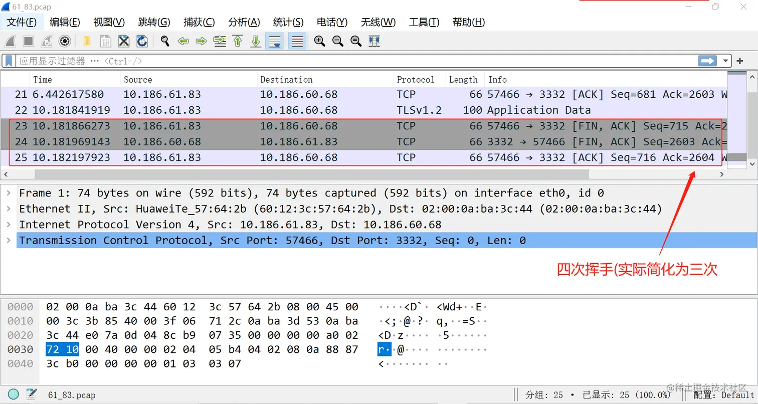 我们可以通过 tshark 抓包来观察 TCP 连接、断开的具体过程。