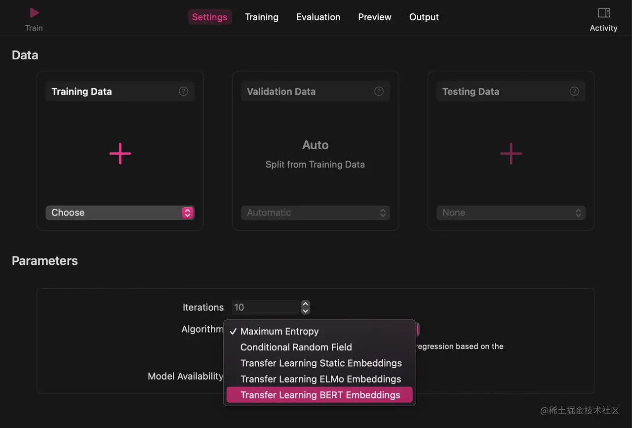 此前,Create ML 已经支持基于 LSTM 的 ELMo 模型用于训练分类和标注。然而 BERT 诞生后,它在各类 NLP 比赛中疯狂屠榜,一时风头无两。
