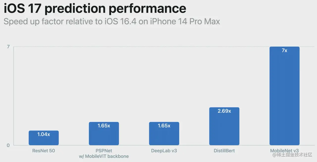 iOS 17 优化了 Core ML 的底层推理引擎,无需重新编译模型或者修改代码,就可以带来预测性能的提升,提升幅度取决于模型和硬件。