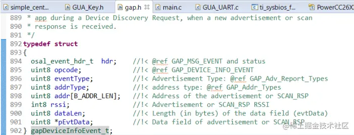 - *pEvtData - 该数据为广播包或者扫描应答包取决于当前主机收到数据包的类型