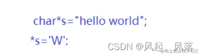 hello world在常量区,只能被读取,不能被修改,所以*s='w',是错误的