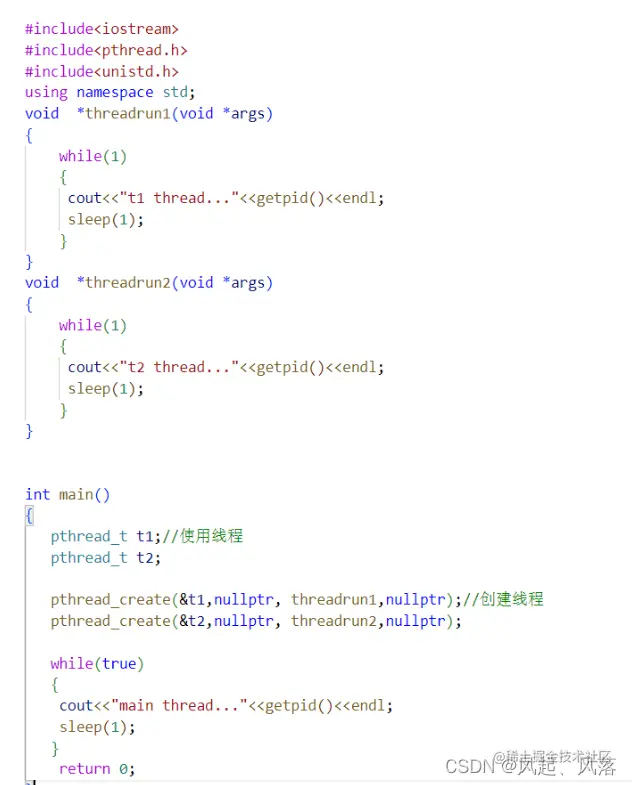 共有三个死循环,若只有一个执行流,三个死循环不可能执行 若都执行了一定有三个执行流