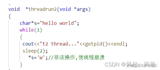 运行时会发生段错误, 刚开始线程是可以运行的,但是发生段错误后,进程崩溃了