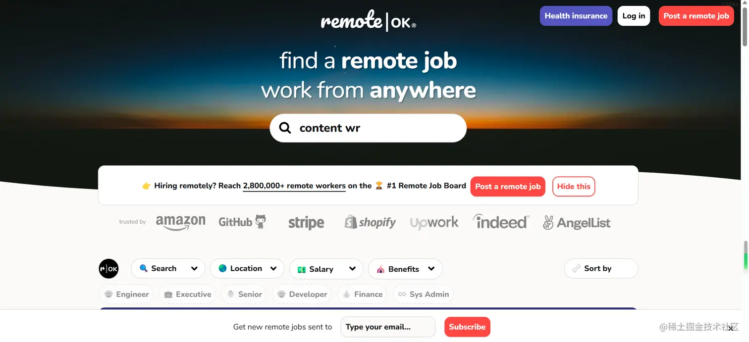 有大量远程工作的自由工作平台,像是亚马逊、GitHub、stripe都与其有相关的合作,同样是海外项目居多,要求一定的外语能力和对国外项目的熟悉度。