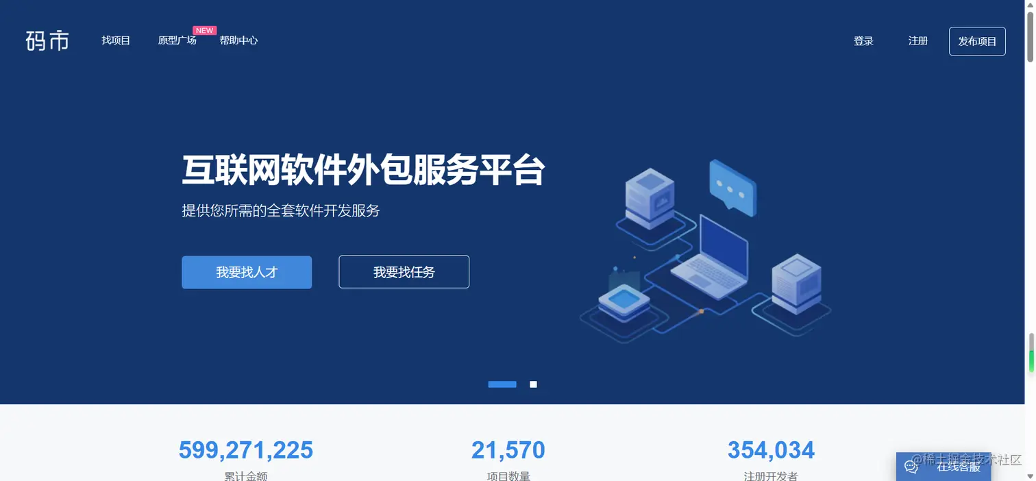 程序员自由远程工作平台,覆盖了程序员的各类线上接单信息。作为一个多年来致力于服务程序员外包项目的平台,程序员客栈有大量的项目可供选择,平台采取的算法是通过标签和你上传的在线简历等匹配相关的外包项目,并以此进行需求方和开发者之间的双向选择。