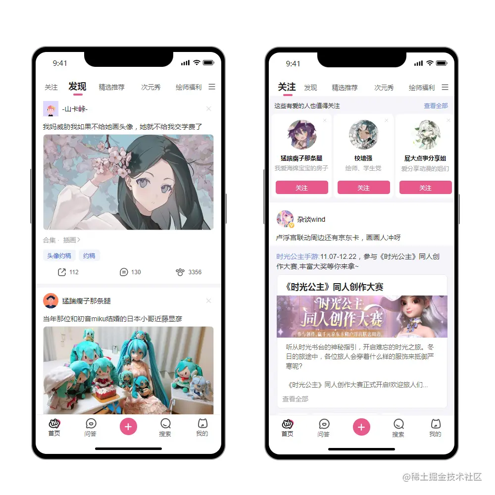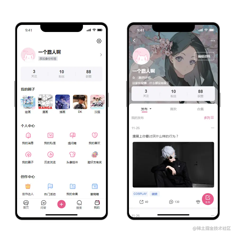 本套移动端APP素材模板使用标准尺寸375*812PX制作。素材使用粉红为主色系,表达清新、活泼、二次元、可爱,无论作为项目参考或是学习都是很不错的素材。
