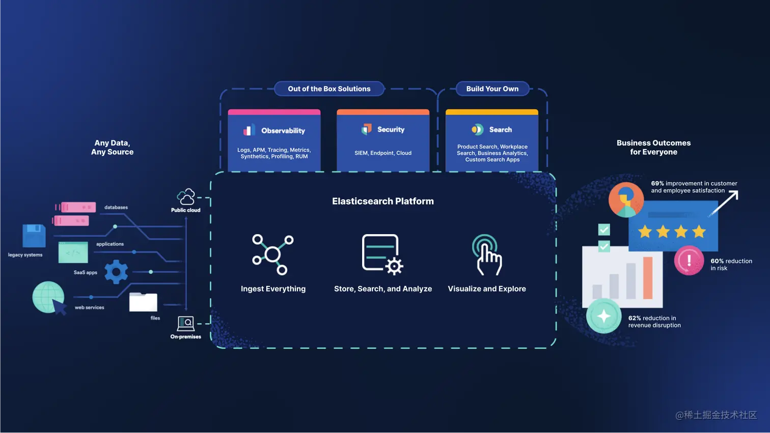 Elastic 可观测性可将指标、日志和痕迹转化为行之有效的 IT 见解,在整个数字生态系统中实现一体化的可观测性。