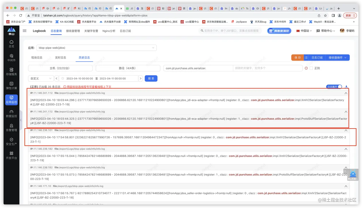 故根据此日志关键字排查初始化加载日志,发现正常机器都加载了两个序列化对象,只有出问题的那个机器只加载了这一个序列化对象。