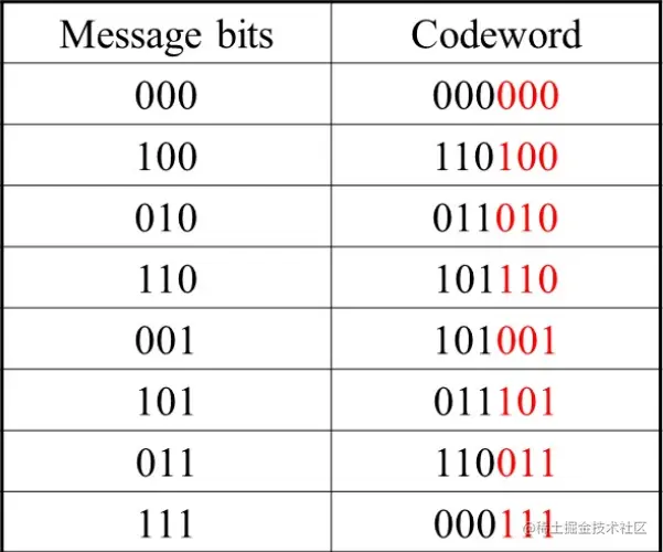 译码机制要求将每个有错的矢量用此矢量同列的最顶端的有效码字代替。