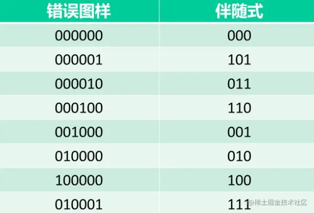 线性分组码的一个重要性质是,(可纠正的)错误图样与伴随式一一对应。