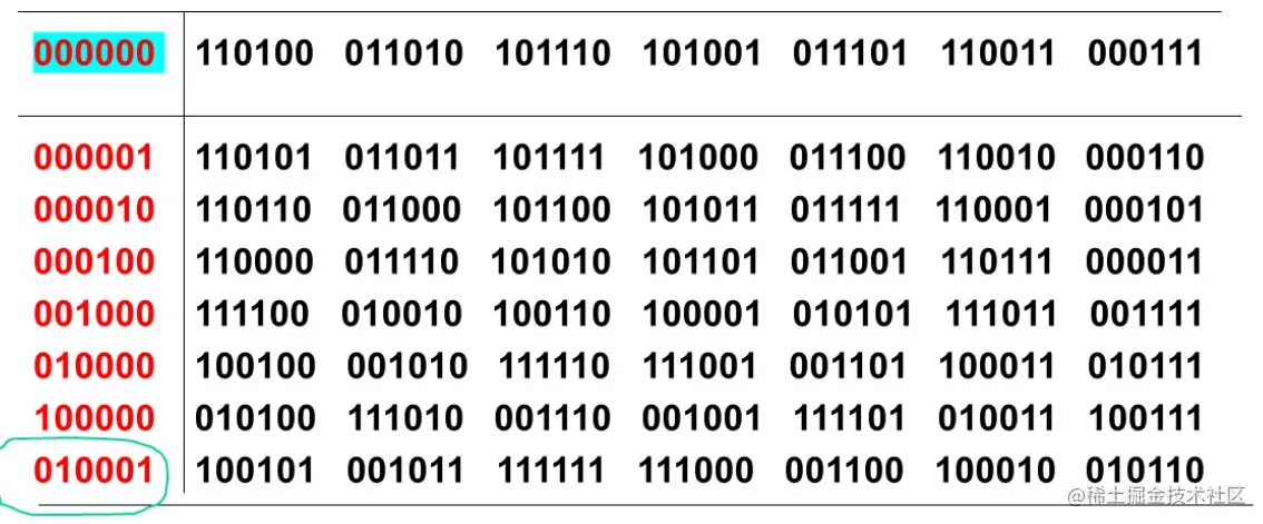 (6,3)码的标准阵如下。