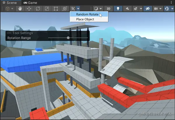 - 单击场景视图工具工具条叠加中的可用自定义编辑器工具下拉菜单。