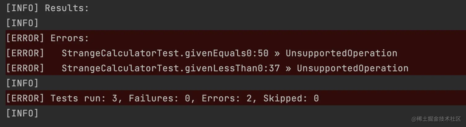 由于没有编写任何代码来满足这些测试用例,因此这些测试用例将会全部运行失败。