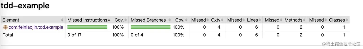 限于篇幅,Maven pom文件、测试报告生成等配置就不贴出来了,请读者自行到本案例代码tdd-example/tdd-example-01中查看。