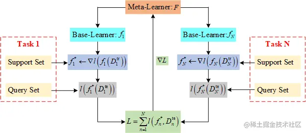 元学习器 (Meta-Learner),是元层中的模型,对所有任务上的训练经验进行归纳总结。 每次训练基础学习器后,元学习器都会综合新的经验,更新元学习器中的参数,其基本功能如下: