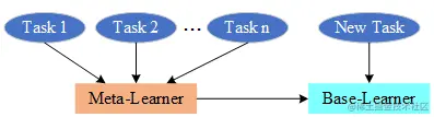 对多个任务的共性进行归纳,在新任务上进行快速准确的推理, 并且将推理输送给基学习器,作为初始模型和初始参数值, 或者是其他可以加速基学习器训练的参数。
