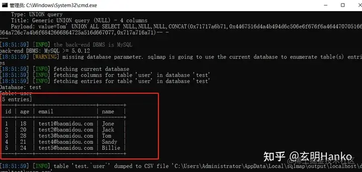 可以看到已经打印出数据库名称,如果是--dump命令打印的就是数据库表中的数据。