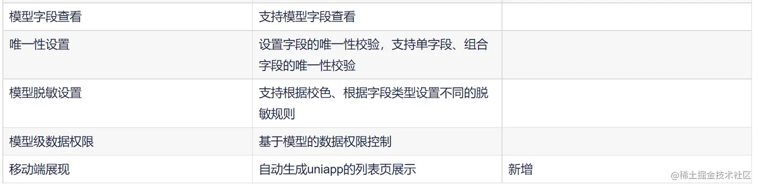 - 支持动态模型创建,列表引擎支持动态创建物理库表,无需提前建库建表,大大降低操作技术门槛
