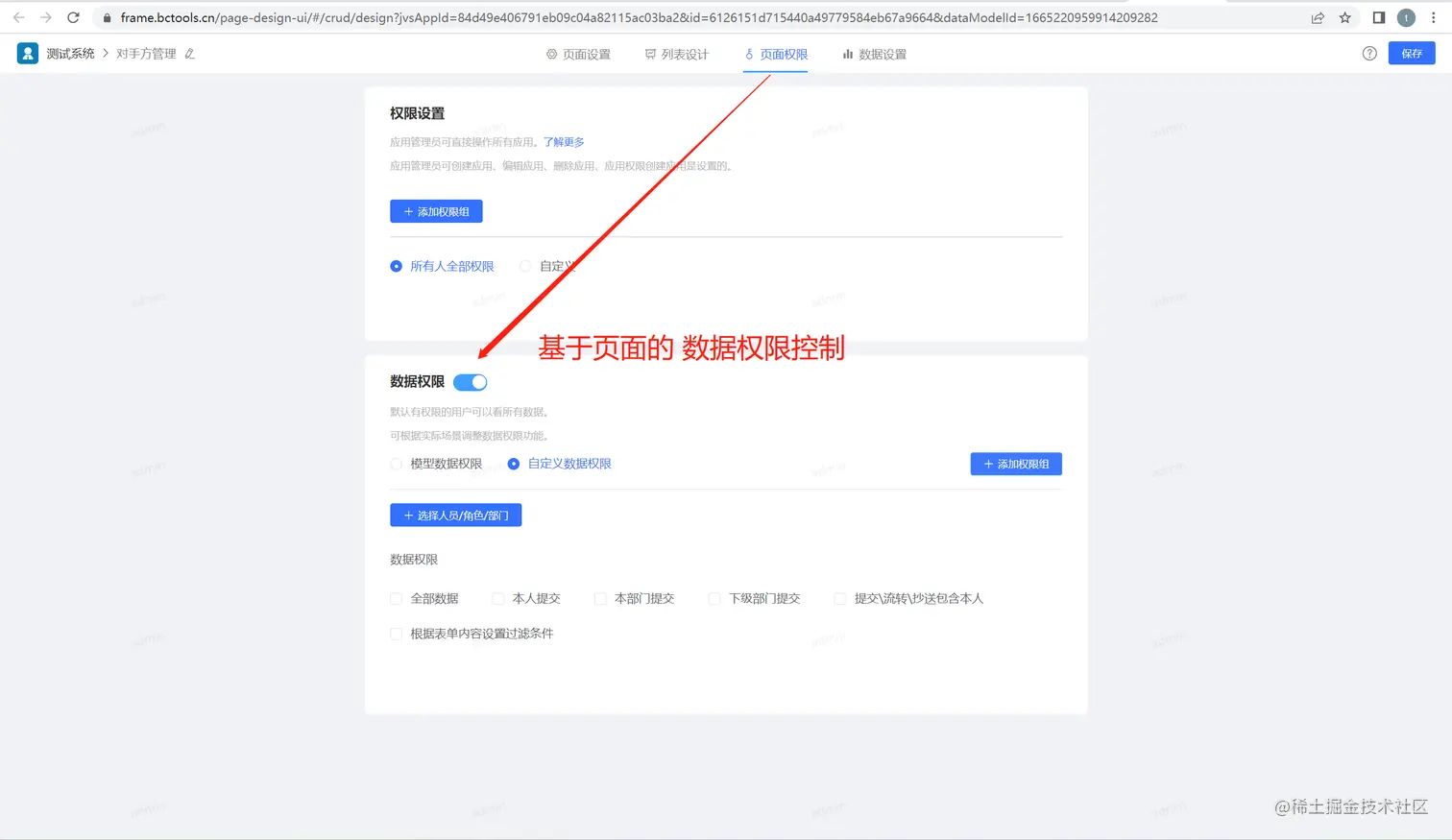 4、数据权限,实现两个层级的数据权限,一个层级基于数据模型层控制(全局)、一个层级基于页面级控制(页面)