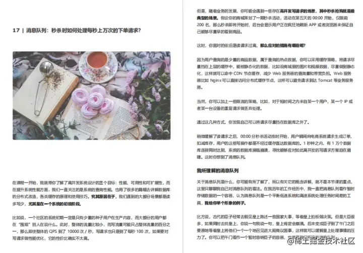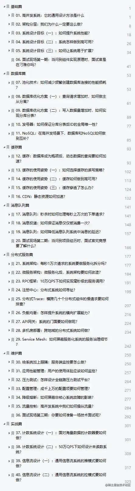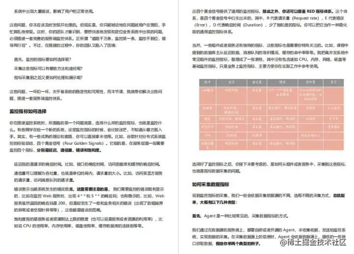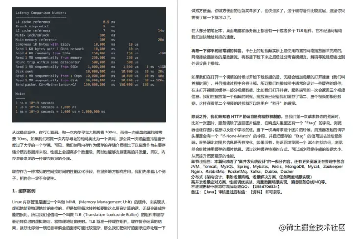 本手册内容一共由七个部分组成,基础篇、数据库篇、缓存篇、消息队列)篇、分布式服务篇、维护篇、实战篇,接下来会挑选每个章节的部分内容截图展示出来给大家阅读。