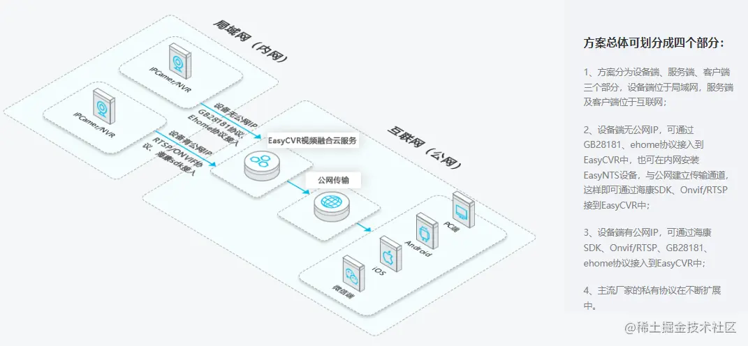 2、看设备:如果涉及到海量设备接入、多层级级联架构,前端设备品牌、型号不一、云端汇聚,建议选择EasyCVR方案,兼容性更高。