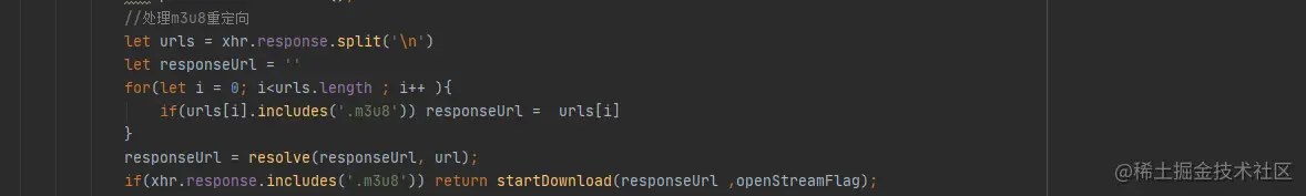 针对该反馈,我们立即进行了优化。在此处增加代码,如果请求的是m3u8地址,响应返回的内容还是m3u8,则递归请求的方法,如下图: