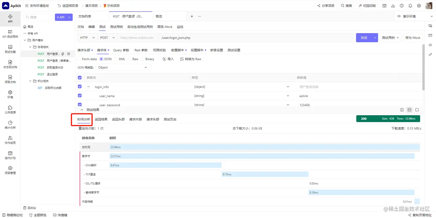 填写好请求参数后,点击测试按钮即可得到测试报告,报告包括以下内容: