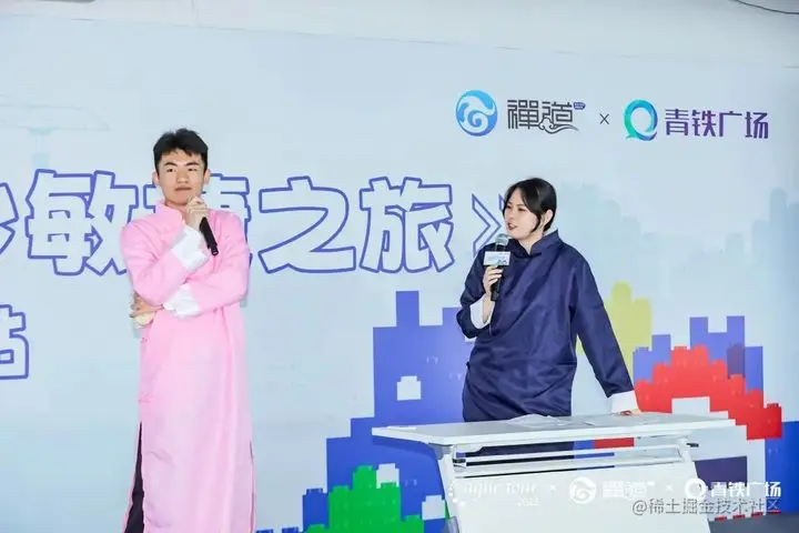 爆梗频出的开场相声让场内气氛达到了一个小高潮。“程序员也有三宝:……”相信在现场的小伙伴已经在心里默念“加班、闷骚、修电脑”了。(阿道正能量:相声内容仅供娱乐,最终还需做好项目管理,No Bug,不加班!)