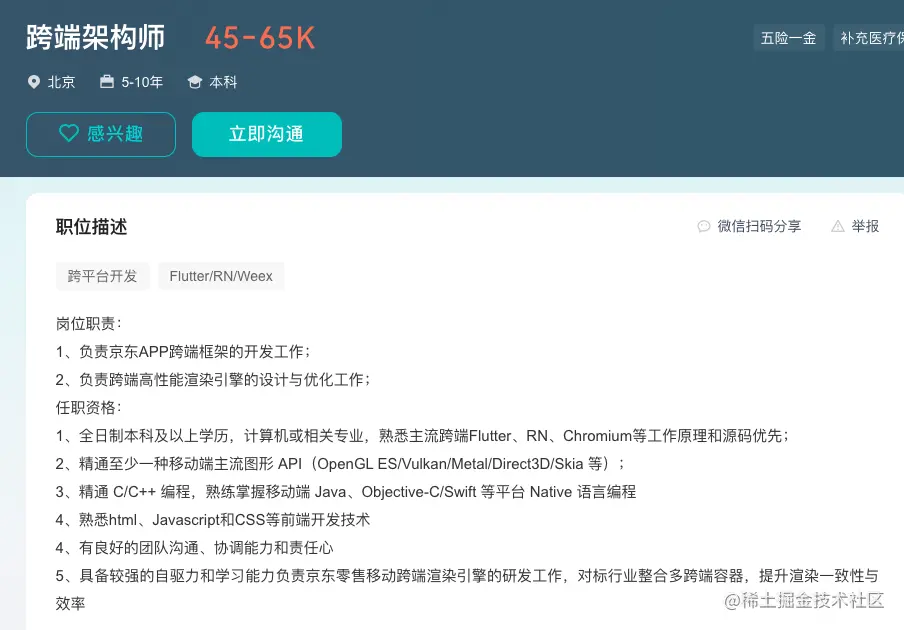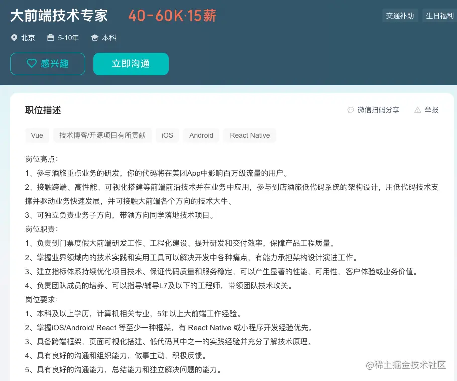 一些大前端工程师的招聘中也会明确要求开发者精通移动端开发: