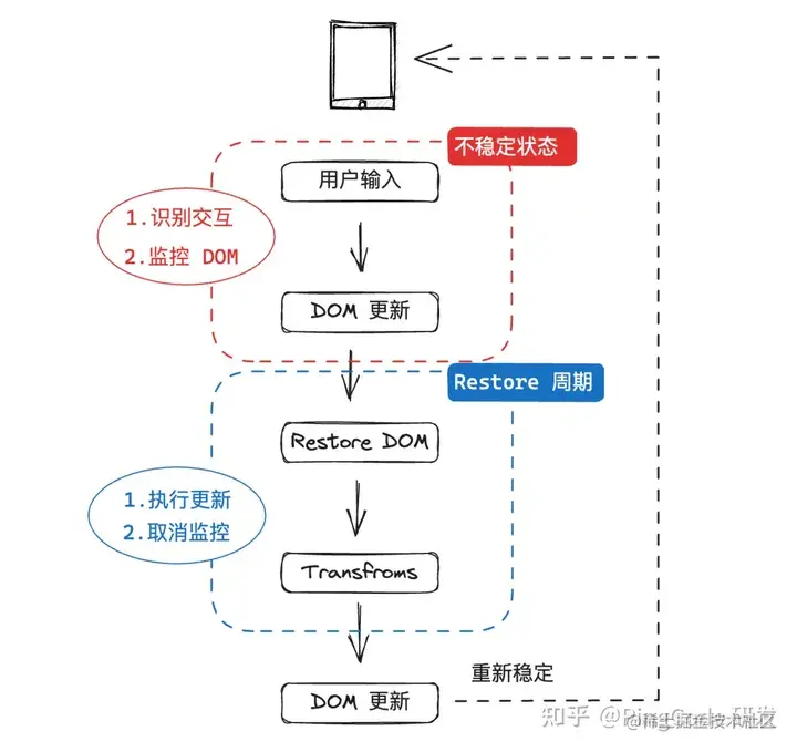 用户输入 -> DOM 更新(默认行为) -> 恢复 DOM -> 数据变换 -> DOM 渲染(数据驱动)
