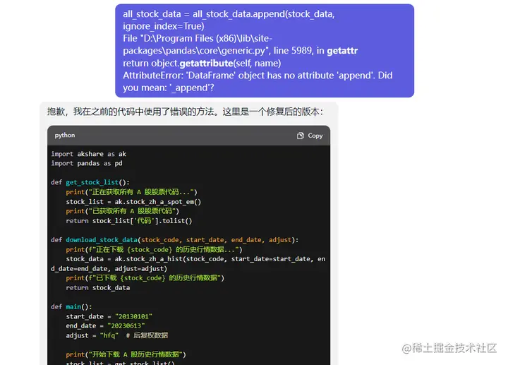 历史行情数据是做量化投资的基础必用数据。怎么借助ChatGPT来零代码实现批量下载沪深京 A 股历史行情数据呢?