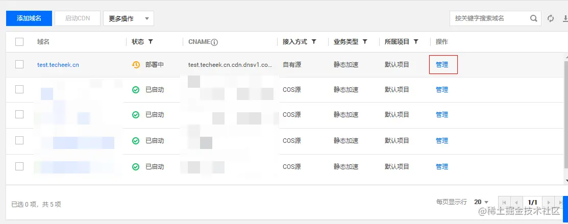 然后点击当前域名的管理按钮。