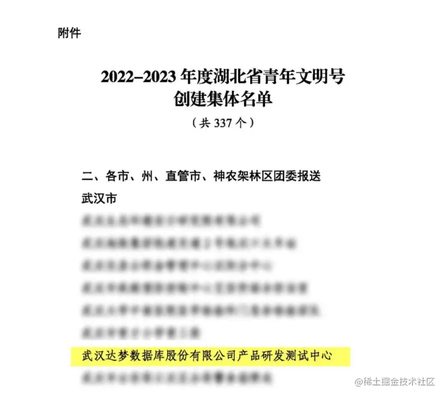5月4日,湖北省青年文明号组委会印发《关于确定2022-2023年度湖北省青年文明号创建集体的通知》,武汉达梦数据库股份有限公司产品研发测试中心获批立项“湖北省青年文明号创建集体”。