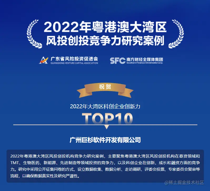 5月20日,“2023年粤港澳大湾区风投创投高峰论坛”上,“2022年粤港澳大湾区风投创投机构竞争力研究案例”正式揭晓。凭借多年深耕分布式数据库的技术积累,以及聚焦金融行业的丰富应用实践,巨杉数据库成功入选“2022年大湾区科创企业创新TOP10”。