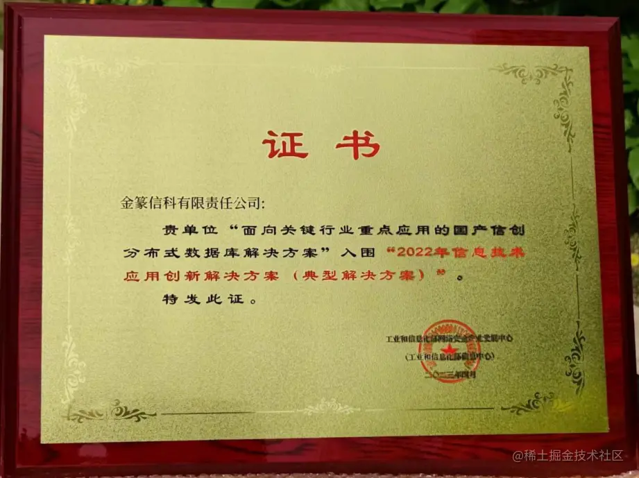 5月14日消息,近日,由工信部等部门联合主办的数字技术融合创新应用研讨会在福州市举办。本次研讨会重磅发布了2022数字技术融合创新应用解决方案征集工作成果,金篆信科旗下GoldenDB分布式数据库凭借“面向关键行业重点应用的国产信创分布式数据库解决方案”成功入围“2022年信息技术应用创新解决方案(典型解决方案)”。值得一提的是,这也是GoldenDB分布式数据库连续第三年获此殊荣。