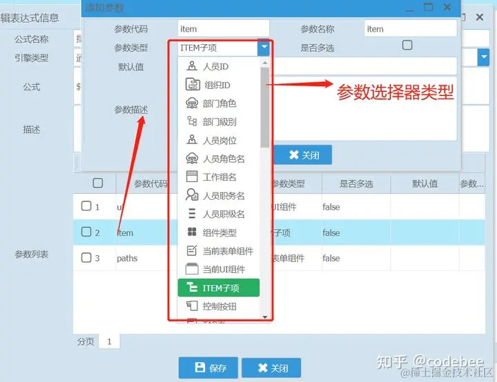 点击公式后弹出参数选择器