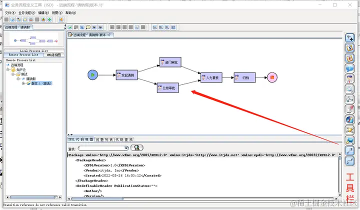 (4)XPDL代码区域:代码与视图是同步更新的,便于对于标准语句的处理。