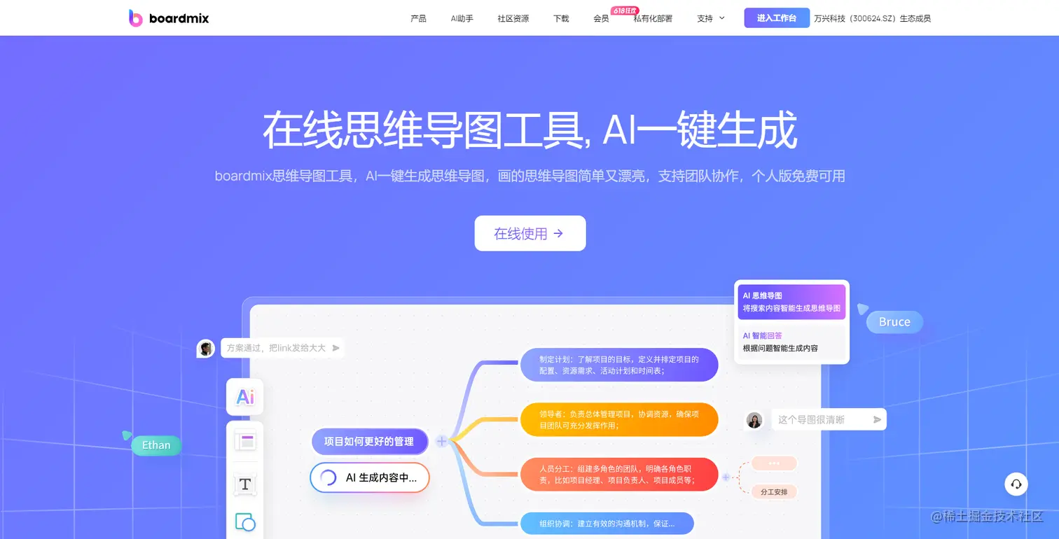 最后还是要特别推荐一下 boardmix博思白板,这是一个功能全面且易用的在线思维导图软件,无论你是个人用户还是团队用户,都可以在这个软件上找到你需要的功能,轻松绘制出简单又漂亮的思维导图!