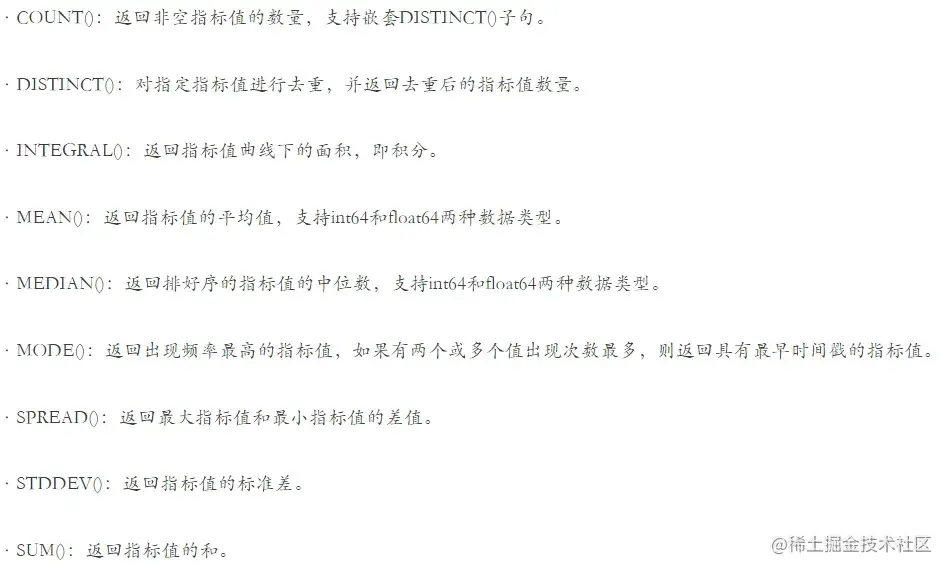 - Query language:目前大部分TSDB都支持基于HTTP的SQL-like查询。