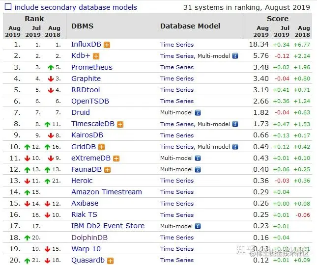 时序数据库排名: