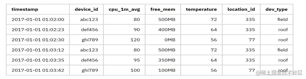 列1、列2、列3....:各个字段及其对应的取值,表示当前时间系统表现出来的指标数值。