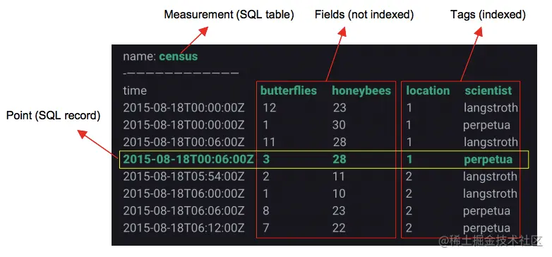 timestamp:时间戳,influxdb支持纳秒级别的时间戳,时间戳在influxdb的索引和查询中占据着至关重要的位置。同一个measurement,如果插入两条tags和时间戳都相同的数据,会发生数据覆盖。