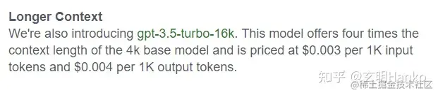 我们还推出了gpt-3.5-turbo-16k。该模型的上下文长度是4k基础模型的四倍,定价为每1K输入标记0.003美元和每1K输出标记0.004美元。